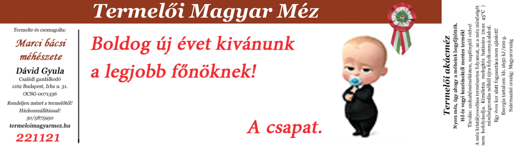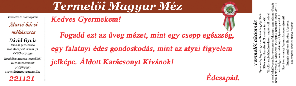 Egyedi címkés mézeknél az átadott kép és szöveg tartalmát, helyességét nem vizsgáljuk, a megjelenített tartalomért a megrendelő felel. Szélsőséges, törvényt sértő vagy a vállalkozásokra nézve hátrányos tartalom esetén az egyedi címkés megrendeléseket nem tudjuk elfogadni. Az átadott képeket és az egyedi címkéket a rendelés teljesítését követően töröljük, kivéve, ha Ön hozzájárul ahhoz, hogy a kész címkét minden ellenszolgáltatás nélkül galériánkban megjelenítsük.